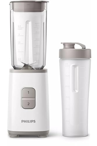 Philips Domestic Appliances HR2602/00 Mini Daily blender met 4 messen, 0,6 l, 2 snelheden, draagbare beker inclusief, ijsversnipperaar, hout, 600 milliliter, wit